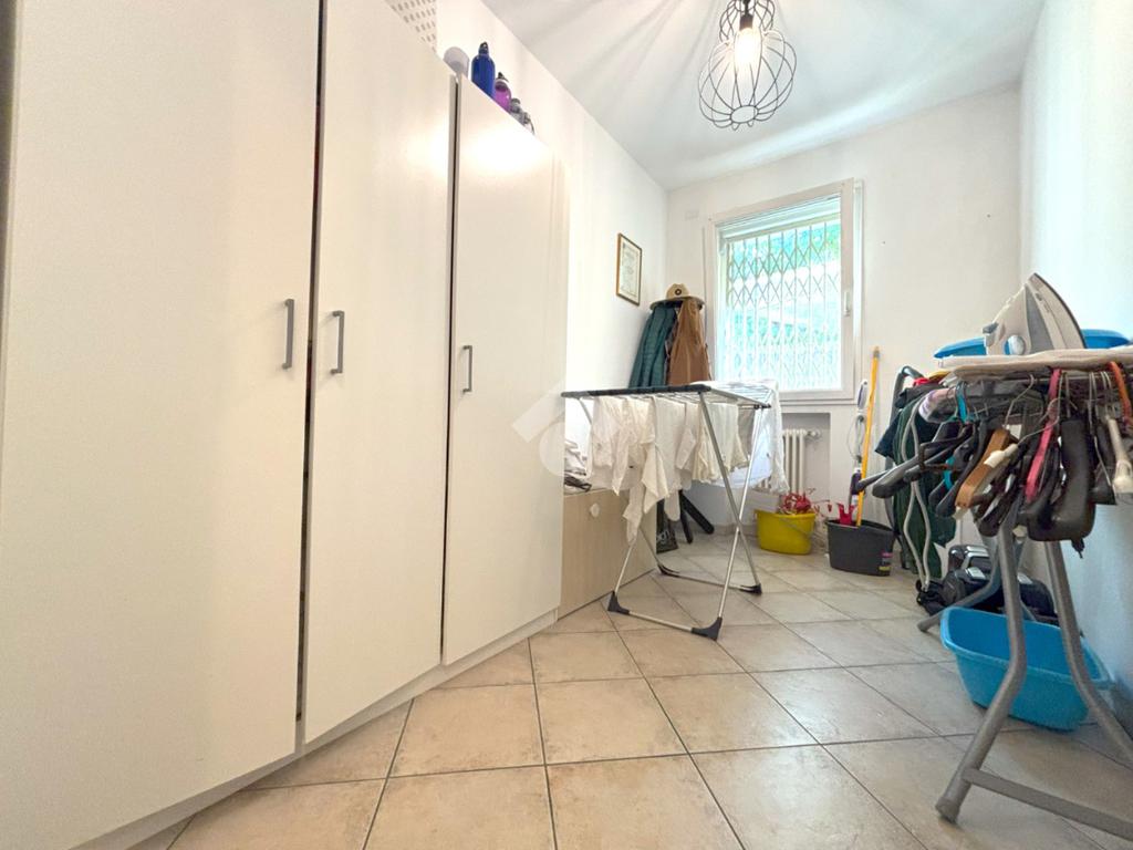 Al piano interrato, collegato direttamente dall’abitazione, si trova un ampio spazio accessorio che ospita un secondo soggiorno/taverna, un comodo garage e una zona lavanderia dedicata.