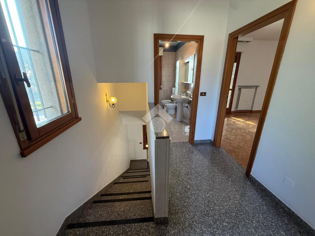 La proprietà si distingue per la corte esclusiva che conduce all’ingresso principale, garantendo riservatezza e tranquillità, caratteristiche tipiche di una soluzione angolare. Sono presenti, inoltre, l’accesso dal portico e un ingresso laterale, elementi che rendono l’abitazione particolarmente funzionale nella quotidianità.